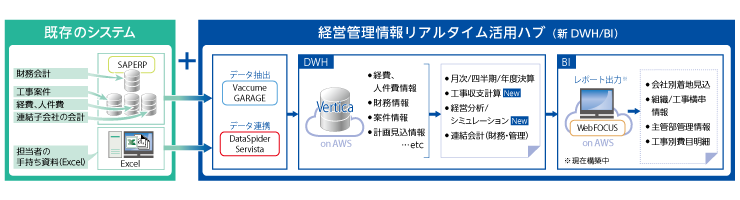 こうして2016年4月、AWS上に構築したVerticaのデータベース基盤を中心とした経営管理情報リアルタイム活用ハブが本格稼働しました。その処理性能の高さは顕著で、配賦処理だけでなくグループ全体の工事の収支をいつでも迅速に取り出せるようになり、月次決算処理の早期化も実現しました。また、配賦処理をSAP ERPの基幹システムから切り出したことで、より高度かつ多様な経営分析が可能になったと言います。