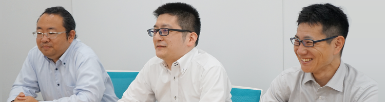 課長 宮ヶ原 和幸 氏 (写真 右) リーダー 釜田 雅大 氏 (写真 中央)