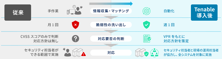 - 脆弱性の洗い出しは月1回程度の実施に留まり、迅速なリスクへの対処が難しい状況になっていた
