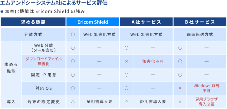 他に良い方法が無いか調査を進めたところ、「仮想ブラウザ」の機能だけでなく、インターネットからでも安全にファイルをダウンロードすることができる「ファイル無害化」を兼ね備えた、ソリューションを採用するに至りました。