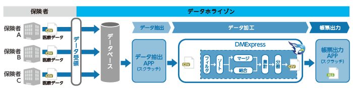 自治体をはじめとする全国の保険者を対象に、レセプトデータや健康診断データの集計/分析と、それを基にした様々な保健事業サービスを提供するデータホライゾン。同社のサービスの心臓部ともいえるそれら医療データの集計/加工処理は、もともとスクラッチ開発のプログラムで実装されていましたが、開発効率やメンテナンス性に長らく課題を抱えていました。ETLツール「Syncsort DMExpress