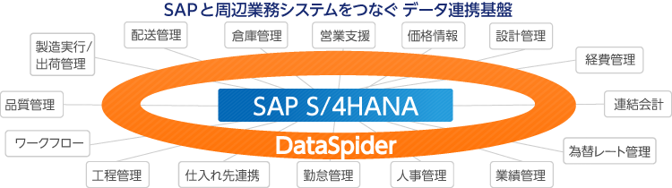- SAP S/4HANAと数多くの周辺システムとのデータ連携をDataSpiderで一元化