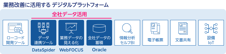 ユーザー視点のきめ細やかな対応ができるWebFOCUSやDataSpiderは迅速な業務改善に欠かせない基盤となっています。