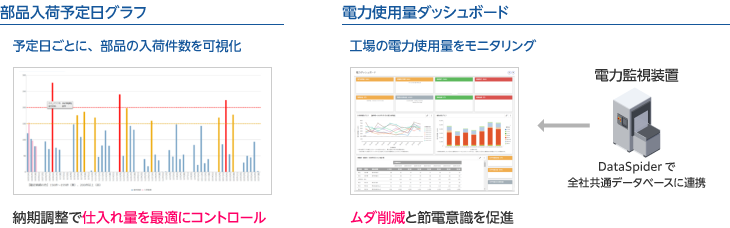 部品の入荷予定を見える化し、仕入れ量をコントロールできるようにしました。工場のキャパシティを超える入荷になる場合には、サプライヤーと納期調整をしたり、社員の配置を強化したり、問題発生前に対応がとれるようになり、安定的な生産につながっています。他にも工場の電力使用量のモニタリングにも活用しており、非稼働時の待機電力などの無駄を特定して対策できるようになりました。従業員の節電意識も醸成されています。