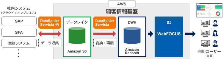 - Amazon Redshiftに顧客情報を収集、一元管理し、WebFOCUSを利用してカスタマーサクセスに対応