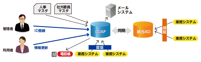 - LDAPに各種システムのID情報を集約し一括管理する仕組みを導入