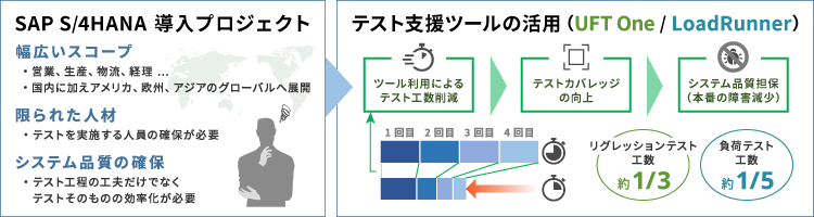 SAP S/4HANAの展開にあたり、テスト工程の人員と工数の課題が浮上