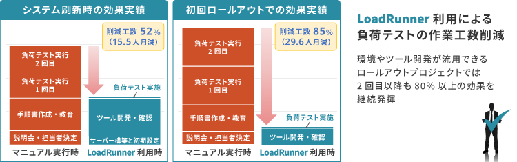 負荷テストの工数は85%減、リグレッションテストの工数は67%減に
