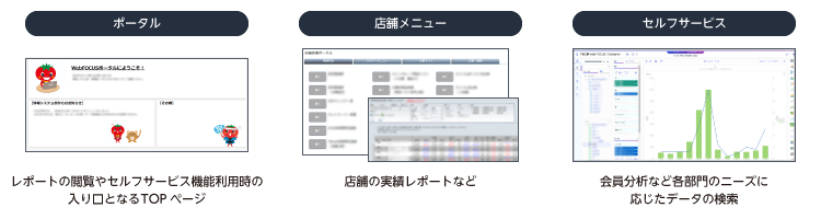 DWHの利用部門を拡大するにあたり、WebFOCUSは定型、半定型検索のレポートを拡充。また、従来利用していなかった、ポータルやユーザーが自由にデータの検索ができるセルフサービス機能も提供しています。