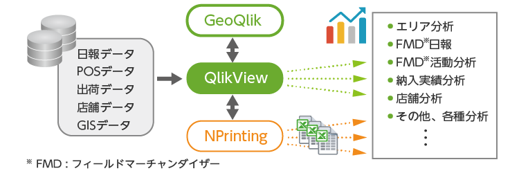 売上データに加え、FMDが日々入力する日報データを取り込むことで、データを分析/比較し、個人の主観を省いた客観的な判断が可能になりました。その結果、最適なエリアの割り振りや、1人のFMDが訪問する店舗数の適正数などが、データの裏付けを持って正確に導き出せるようになりました。また、2回訪問と3回訪問での効果の違いの有無、陳列を変えた影響など、具体的な施策と効果検証が容易にできます。また、地図連携ソリューション「GeoQlik」によって、地図上で視覚的に情報を共有するメリットを実感しています。