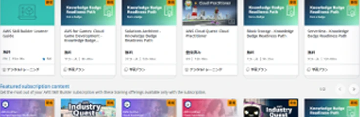 AWS Skill Builderは、AWS社が公式に提供するeラーニングプラットフォームです。600種類を超えるオンデマンドコースを好きなタイミングで受講でき、初学者から上級者まで幅広いレベルをカバーしています。実際のAWS環境を利用した約200種類のハンズオンコンテンツも用意されており、追加費用の心配なく実践的に学べる点も魅力です。