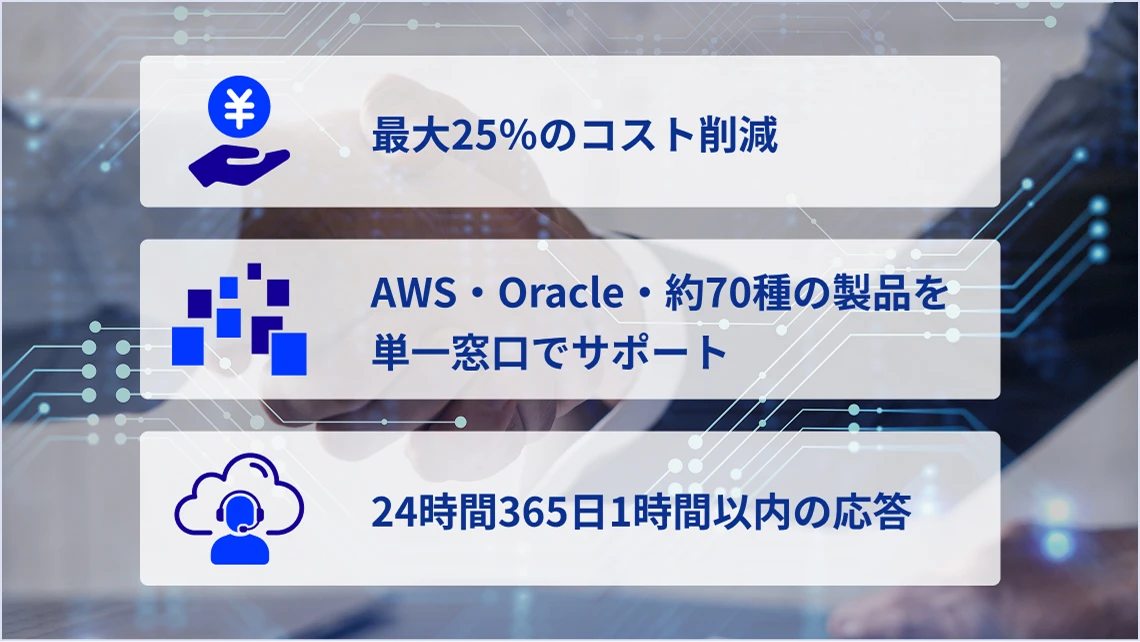 ・AWS・Oracleなど約70種の製品を単一窓口でサポート