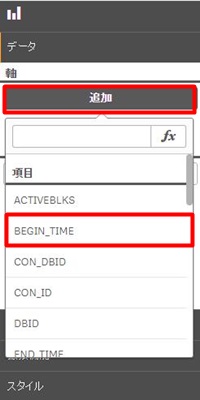 3.「データ」の「軸」に"BEGIN_TIME"を追加