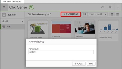 1.Qlik Senseを起動後、「アプリの新規作成」→「スクリプトエディター」を選択