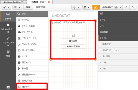 2.「シートの編集」から「棒チャート」を画面上にドラッグ&ドロップ