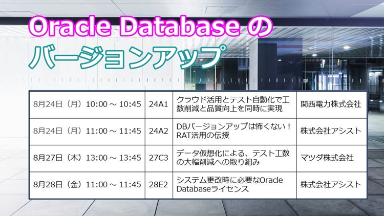 Oracle Databaseのバージョンアップを実施する上で避けては通れないSQLテストの課題。Real Application TestingやOracle Cloud、Delphixを利用して効果的に対応された事例をぜひご視聴ください。