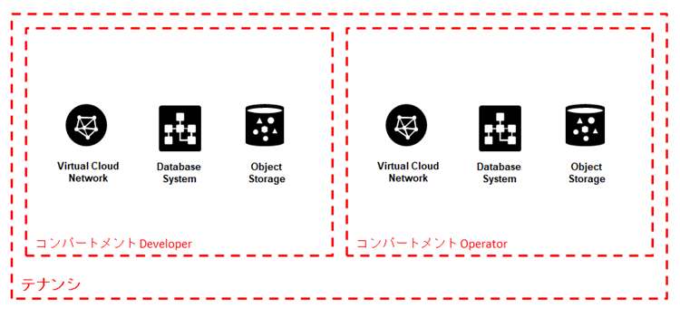 OCIでは、コンパートメントを使うことで、1つのテナンシで複数のシステムの運用管理が簡単にできます。