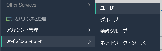 1.コンソールメニューから、[アイデンティティ]→[ユーザー]をクリックします。