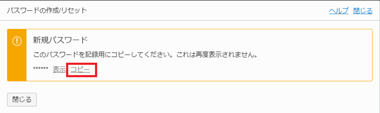 詳細画面が開きますので、[パスワードの作成/リセット]をクリックします。