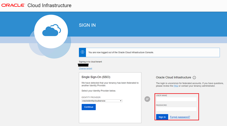これで、仮想クラウドネットワーク(VCN)の操作のみ許可されたユーザーとしてサインイン