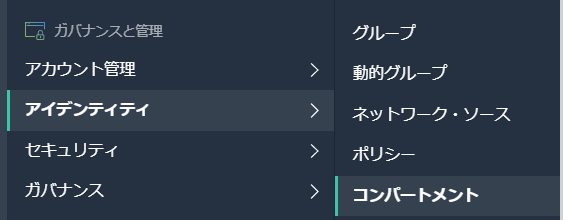 1.コンソールメニューから、[アイデンティティ]→[コンパートメント]をクリックします。