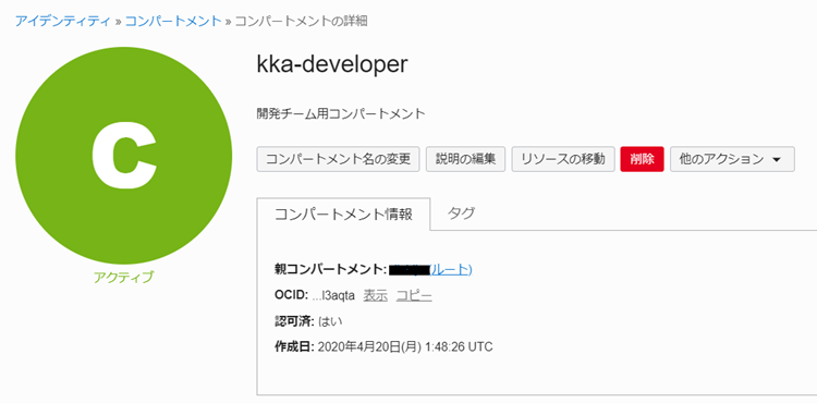 4.コンパートメント画面の一覧に作成したコンパートメントが表示されます。