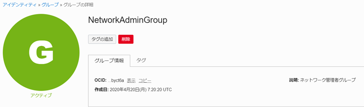 名前のリンクをクリックすると、グループの詳細画面が表示されます。