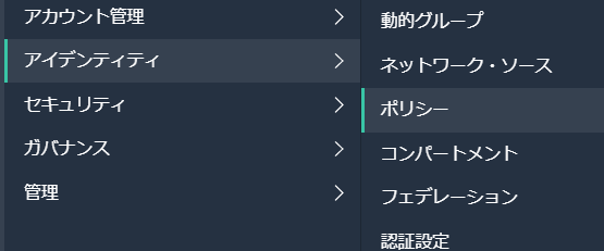 1.コンソールメニューから、[アイデンティティ]→[ポリシー]をクリックします。