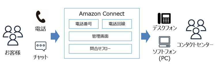Amazon Connectでは、顧客からの電話の受信、あるいは顧客への電話発信の両方を行えます。