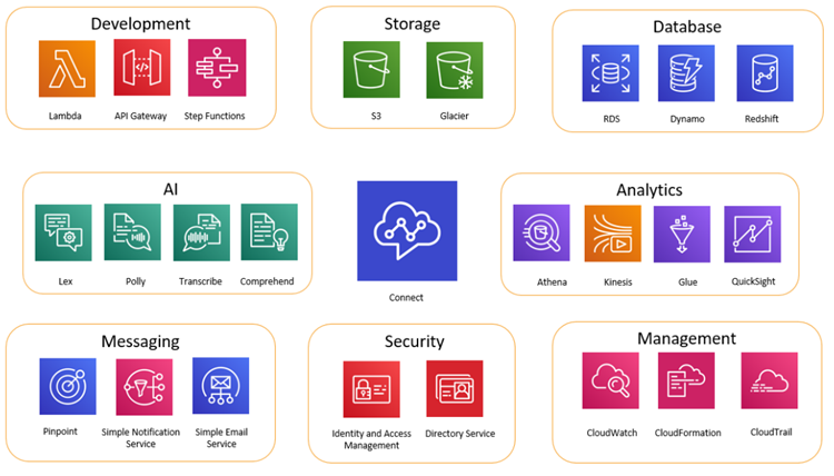 Amazon Connectは、様々なAWSサービスと連携し機能を拡充できます。