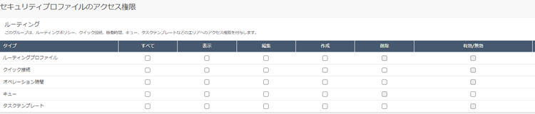 権限の制御として、表示のみチェックしたセキュリティプロファイルを作成した場合は、以下のように、ルーティングプロファイルの一覧の参照のみ行えるようになります。ルーティングプロファイルの新規作成・編集・削除等は行えません。