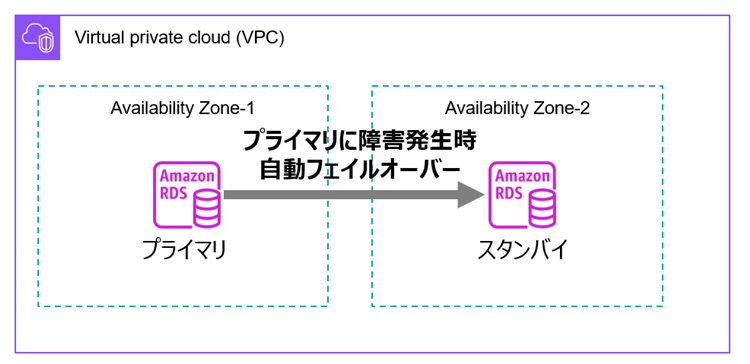 また、スタンバイインスタンスにフェイルオーバーしても、DBを参照する側でアクセス先指定を変更する必要はありません。フェイルオーバーの際、DBのアクセスポイントとなるDNS名は、AWSによって自動更新されるためです。