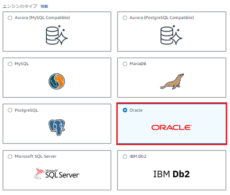 4.「エンジンのタイプ」を選択します。ここではOracleを選択します。