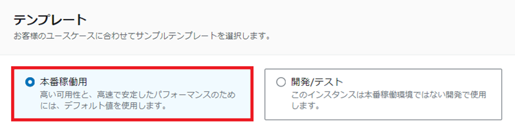 6.テンプレートを選択します。テンプレートを指定すると、ユースケースに沿ったデフォルト値が自動で設定されます。
