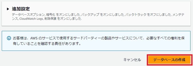 14.入力が完了したら、「データベースの作成」をクリックします。