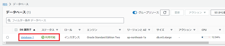 # sqlplus 'admin@(DESCRIPTION=(ADDRESS=(PROTOCOL=TCP)(HOST=XXXXXXXXXX.ap-northeast-1.rds.amazonaws.com)(PORT=1521))(CONNECT_DATA=(SID=database-1)))' SQL*Plus: Release 19.0.0.0.0 - Production on Thu Nov 22 23:18:32 2023 Version 19.12.0.0.0 Copyright (c) 1982, 2023, Oracle. All rights reserved. Enter password: Connected to: Oracle Database 19c Standard Edition 2 Release 19.0.0.0.0 - Production Version 19.12.0.0.0 SQL> select instance_name from v$instance; INSTANCE_NAME ---------------- TESTDB