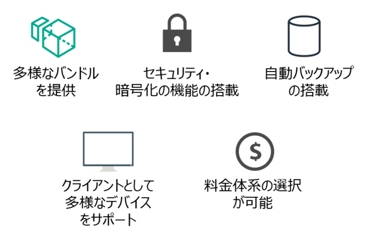 | Microsoft Office 2016 プラス アプリケーションバンドル | 32 ビット Microsoft Office 2016 Professional Plus、Trend Micro Worry-Free Business Security Services、そしてユーティリティ (Internet Explorer 11、Firefox) | +15.00USD/月 |