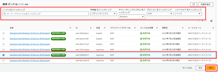 前述のとおり、Amazon WorkSpacesのバンドルはハードウェア・OS・ソフトウェア等の情報を全て含みます。