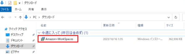 8-2.ダウンロードが完了したら、エクスプローラから、ダウンロードされたファイル「Amazon+WorkSpaces」をダブルクリックします。