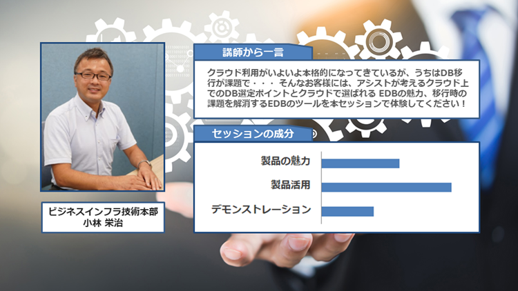 本セッションではEDBで利用できる豊富なツールの中から、「Postgres Migration Portal」によるDBスキーマ移行、「Postgres Enterprise Manager のパフォーマンス統計」を使ったチューニングのライブデモを行い、実際にEDBの活用シーンをイメージいただけます。