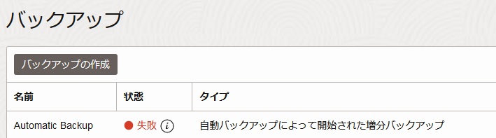 ※バックアップ取得結果の「状態」が失敗となっている場合は取得に失敗しています。
