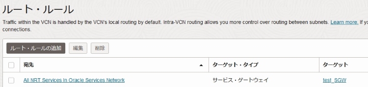 ・ルート表にサービスゲートウェイへのルートルールがあること