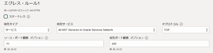 宛先サービス :All < リージョン名 > Services in Oracle Service Network