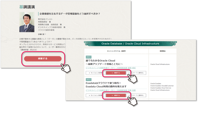 視聴ページには全てのセッションが一覧で掲載されていますので、視聴したいセッションの「視聴する」ボタンから動画に移動します。
