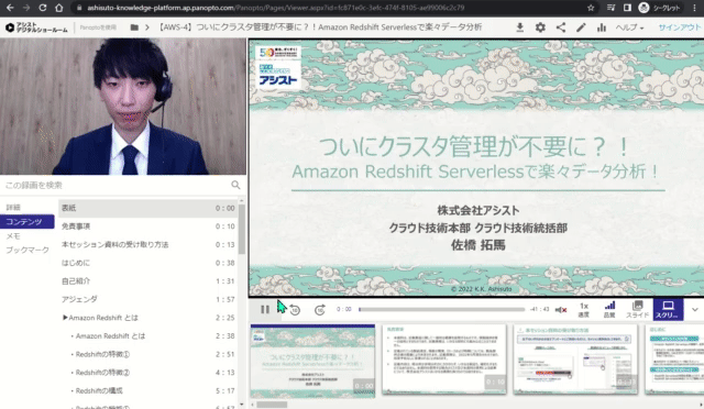 今回はウェビナーの配信基盤として利用していますが、その真価は知識の共有だと思っています。Panoptoはアシストからご提供が可能ですので、ご興味のある方は、ぜひ下記ウェブサイトをご覧ください。