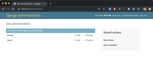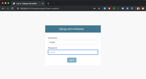 スーパーユーザーでの動作を確認するためには「/admin」ページにアクセスします。