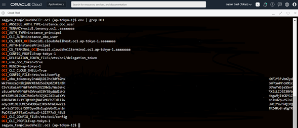 OCI CLIが利用可能な環境では、OCI CLIに関する変数が事前に設定されます。