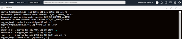 1. “.oci”フォルダへ移動し、“oci_cli_rc”ファイルが存在することを確認