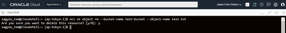 次に、コマンド「oci os object delete」の代わりにコマンド「oci os object rm」を使用してみます。こちらも問題なく機能します。