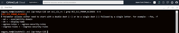 パラメーターエイリアスは“oci_cli_rc”ファイルにはOCI_CLI_PARAM_ALIASESで指定されています。